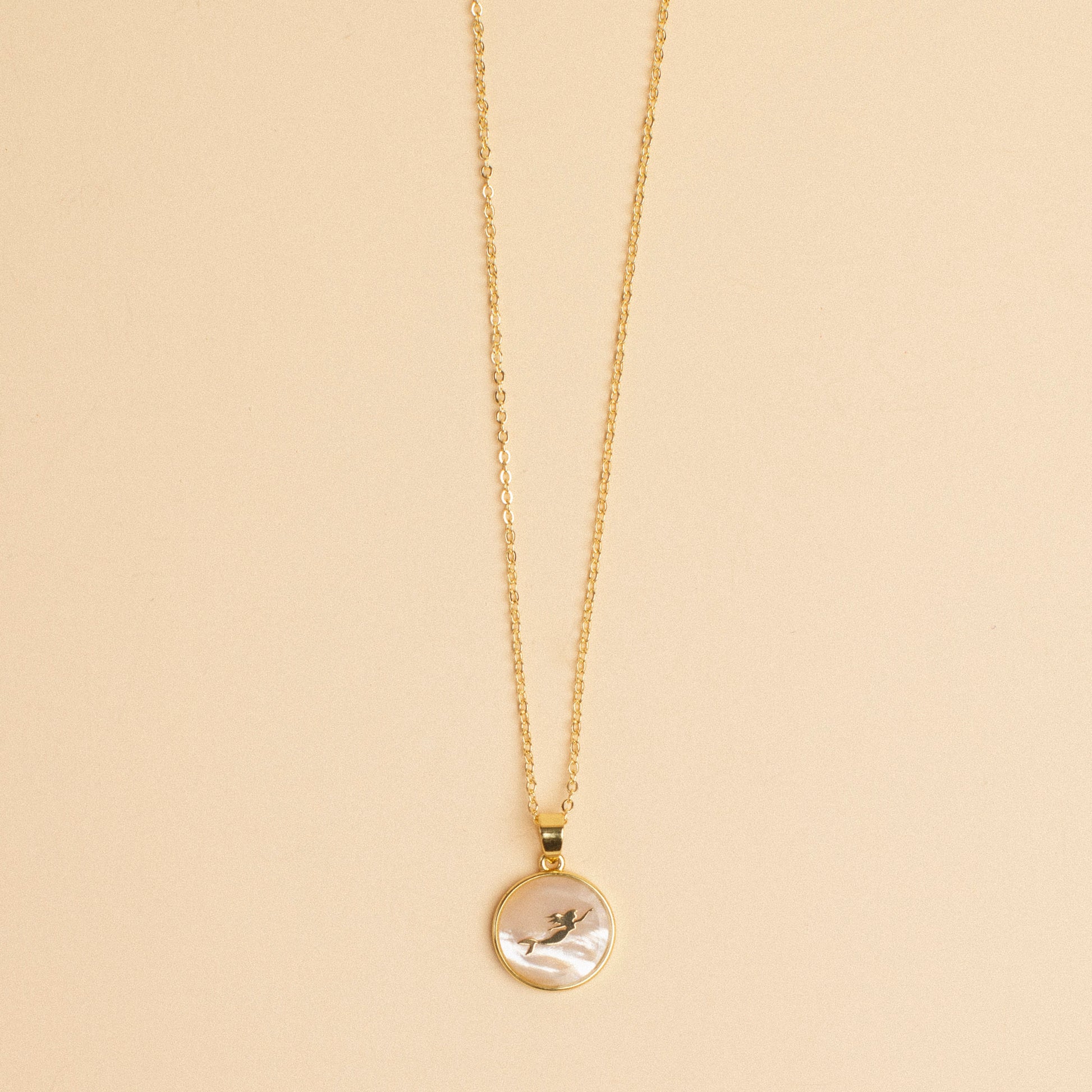 This necklace is made from sea and story. Its mother-of-pearl center shimmers with soft iridescence, while the mermaid charm nods to the spirit of freedom and transformation.